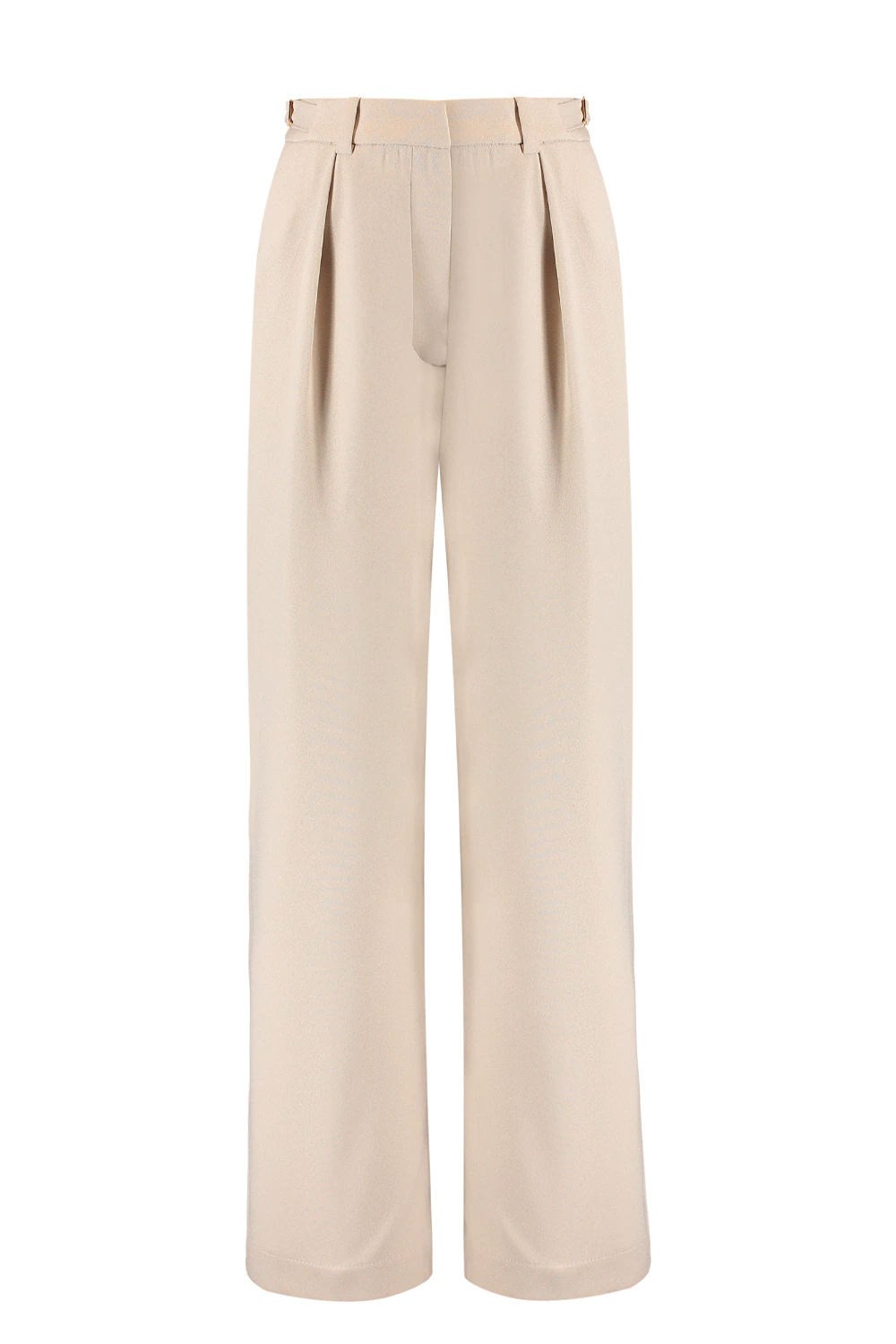 Calça em Alfaiataria com modelagem Wide Leg / Pantalona. Cós com fivela reguladora, o que proporciona vestir a calça cintura alta ou cintura baixa. Cós com colchete e zíper. Bolsos faca nas laterais e bolsos falsos nas costas.